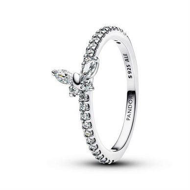 Add Subtle Sparkle To Your Look. From Pandora, This Sterling Silver Ring Features Clear Cubic Zirconia With A Butterfly Set At An Angle As A Symbol Of Transformation And Beauty. Style Number 194269C03-52