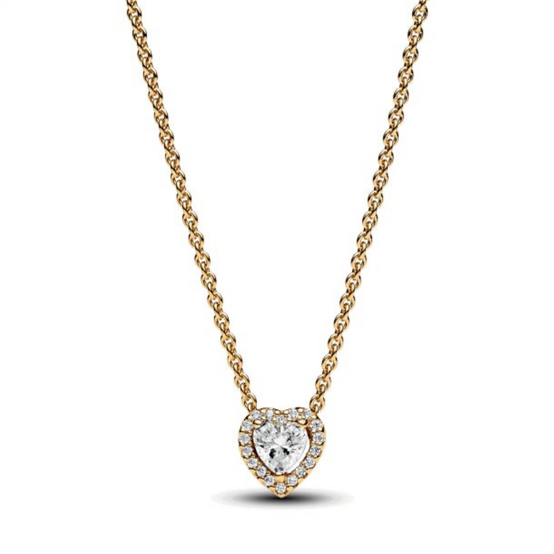 Make A Statement With The Sparkling Heart Collier Necklace. This 14K Gold-Plated Necklace Is Inspired By Classic Design Elements From The Pandora Timeless Collection. Featuring A Raised Heart-Shaped Central Stone Surrounded By A Halo Of Clear Cubic Zirconia, The Necklace Also Has A Rectangular Tag Near The Clasp With An Engraved Pandora Logo. Adjust The Necklace Length To Suit Your Style And Wear With Other Heart-Shaped Pieces For A Look Filled With Love. Style Number 368425C01-45