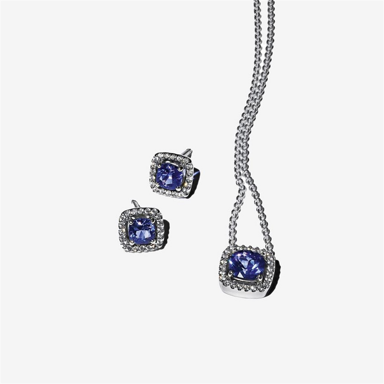 Pandora Sparkling Square Blue Halo Jewelry Gift Set