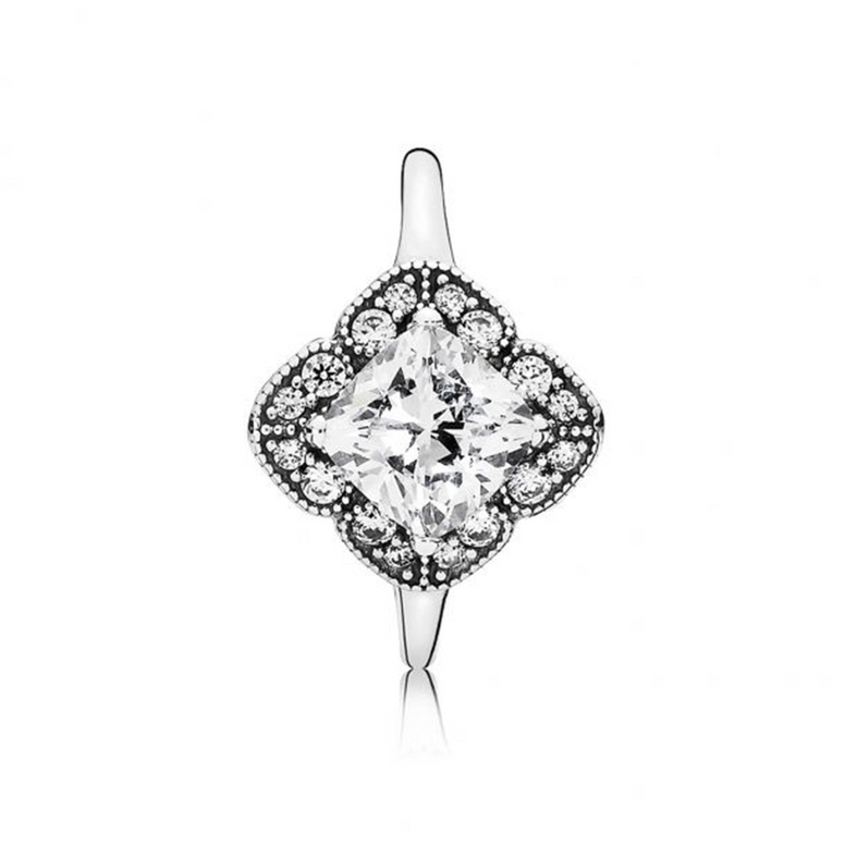 From Pandora, Inspired By Antique Jewelry Styles, This Enchanting Ring Has A Timeless, Elegant Appeal That Will Intrigue Women Everywhere. A Cushion-Cut Center Stone Lends A Sensual Shape And Subtle Sparkle To The Design.