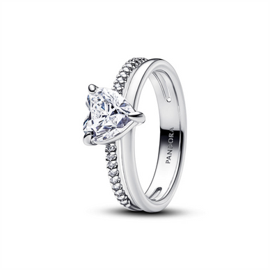 Celebrate Love Every Day With Our Double Band Heart Ring. Crafted From Sterling Silver, The Ring Features A Heart-Shaped Clear Cubic Zirconia, Set In The Centre Of A Polished Band And A Pavé Band, Which Is Adorned With 18 Bead-Set Cubic Zirconia. The Bands Are Held Together By The Heart, Creating A Meaningful Ring That Celebrates The Bonds That Connect Us. Style Number 193100C01-54