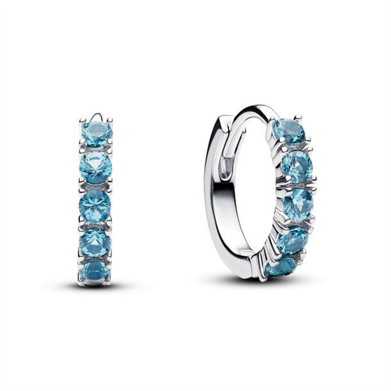 From Pandora, Elevate Your Style With The Light Blue Huggie Earrings, Featuring Sterling Silver And Aquamarine Blue Crystal. These Delicate Designs Add A Touch Of Sparkle To Any Outfit.