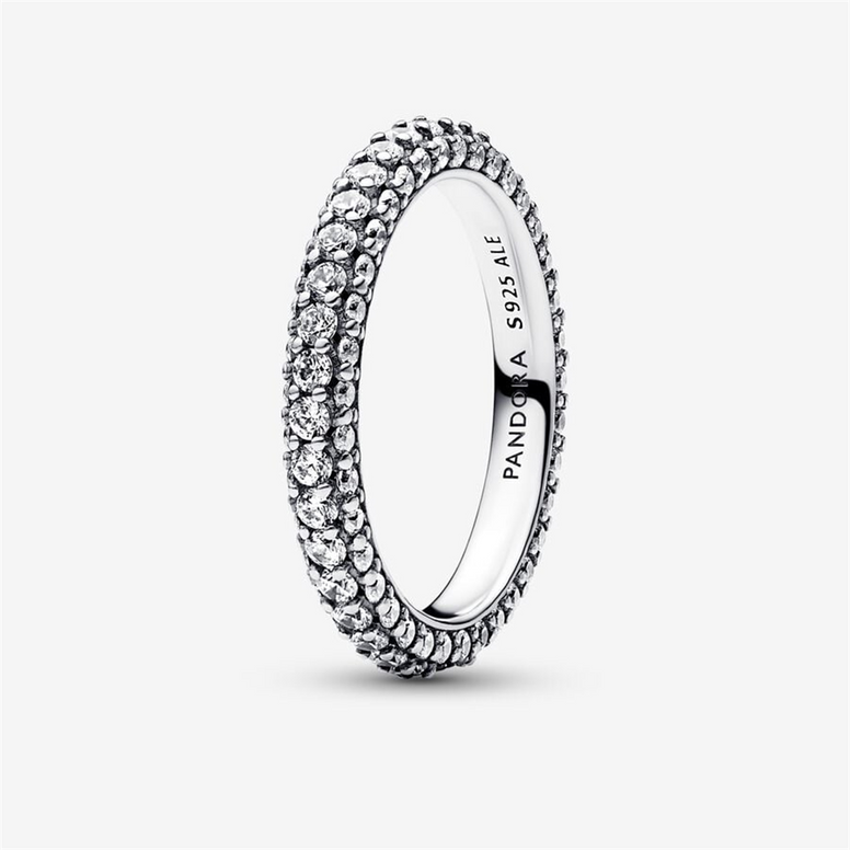 Stackable, Radiant, Timeless. Crafted From Sterling Silver, Our Hand-Finished Pandora Timeless Pavé Single-Row Ring Features One Row Of Clear Cubic Zirconia Around The Centre And One Row Facing Outwards Around Each Side, Creating A Slightly Rounded Square Profile That Sparkles From Every Angle. Style It On Its Own Or With Other Timeless Pavé Pieces To Create As Much Of A Minimalist Or Maximalist Effect As You Want. Style Number: 192627C01-52