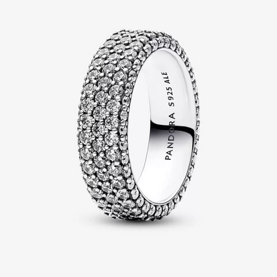 Maximize Your Sparkle With Our Hand-Finished Pandora Timeless Pavé Triple-Row Ring. Crafted From Sterling Silver, This Stand-Out Ring Features Three Rows Of Clear Cubic Zirconia Around The Center And One Row Facing Outwards Around Each Side, Creating A Slightly Rounded Square Profile That Sparkles From Every Angle. Wear It On Its Own Or Stacked With Other Timeless Pavé Rings To Create As Bold Of A Look As You Want. Style Number: 192634C01-54