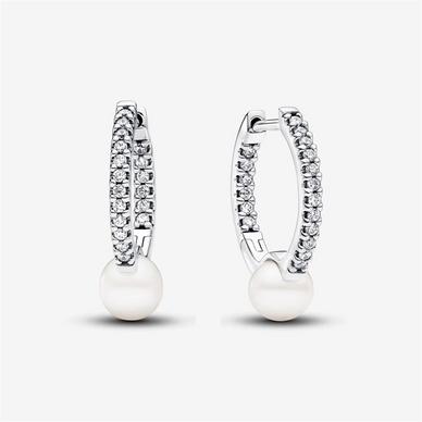 Pandora Essence Treated Freshwater Cultured Pearl & Pavé Hoop Earrings