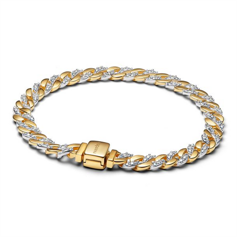 Pandora Timeless Two-Tone Pavé Cuban Chain Bracelet Size 18