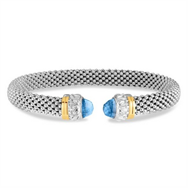 Phillip Gavriel Silver And 18K Gold Blue Topaz Popcorn Renaissance Open Cuff Bangle Bracelet