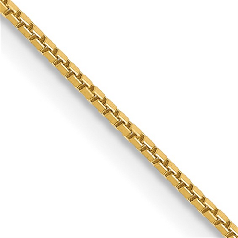 This Exquisite 14K Yellow Gold Box Chain Measures 18 Inches In Length And Features A Delicate 0.5 Mm Width, Making It A Perfect Accessory For Both Everyday Wear And Special Occasions. The Box Chain Design Offers A Modern Aesthetic While Ensuring Durability And Flexibility, Allowing It To Complement A Variety Of Pendants Or Stand Alone As A Statement Piece. Its Lustrous Finish Enhances The Overall Elegance, Making It An Ideal Gift For Loved Ones Or A Luxurious Addition To Your Own Jewelry Collection. Style Number PEN1L-18