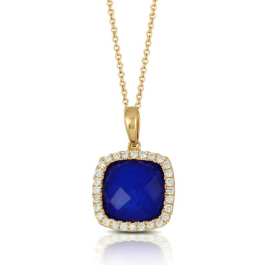 Royal Lapis and Cushion Cut Diamond Pendant Necklace