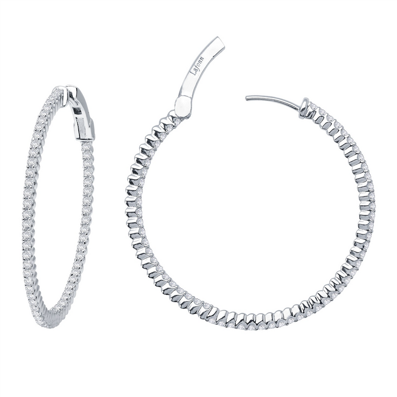 Fun And Elegant. These Inside Out Hoop Earrings Are Set With 2.37 CTW Of Lafonn's Signature Lassaire Simulated Diamonds In Sterling Silver Bonded With Platinum. 45 mm Diameter. Style Number E3007CLP00