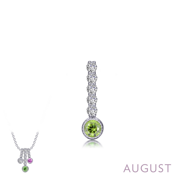 August - Peridot. Lafonn's Birthstone Love Charm, Featuring A Simulated Peridot With Lafonn's Signature Lassaire Simulated Diamonds In Sterling Silver Bonded With Platinum. Wear On A Lafonn CH00028P20 Silver Chain.