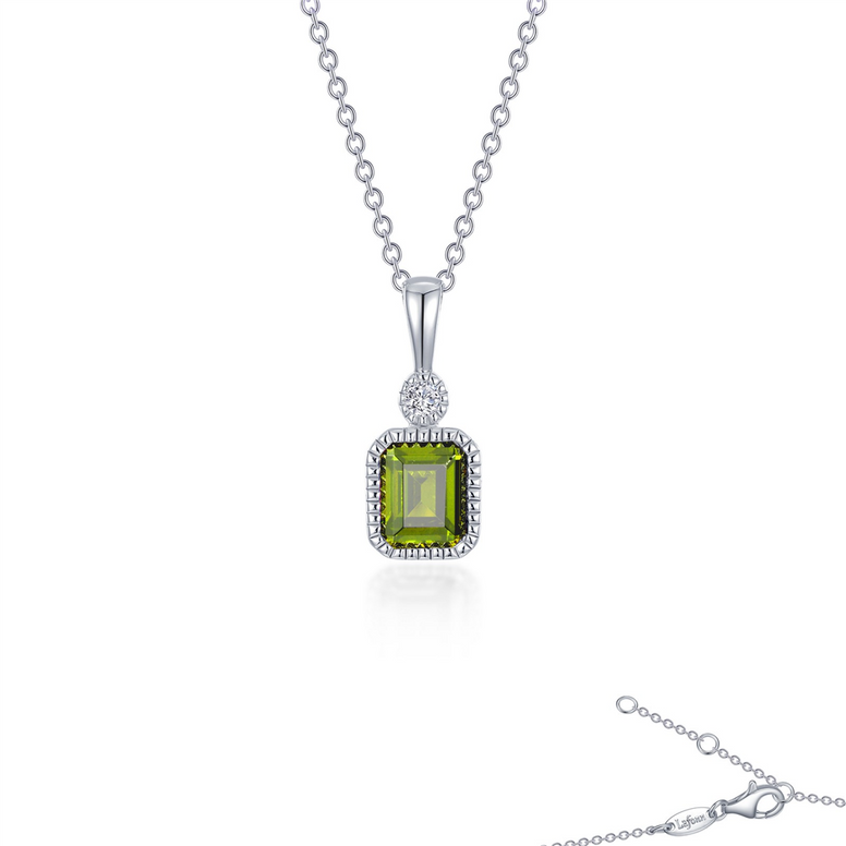 August - Peridot. Adorn Yourself With Lafonn's Birthstone Jewelry. This Gorgeous Pendant Features An Emerald-Cut Simulated Peridot And A Lafonn's Signature Lassaire Simulated Diamond. The Pendant Is In Sterling Silver Bonded With Platinum And Comes On An Adjustable 20" Chain. Style Number BP009PDP20
