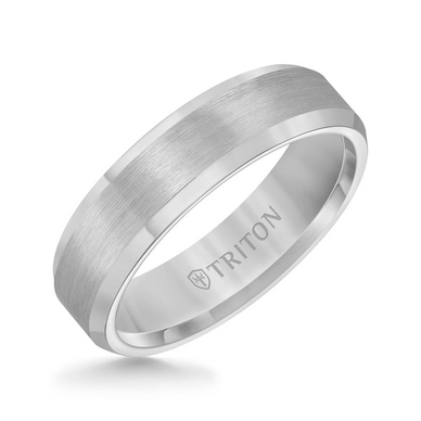 Triton Bevel Edge White Tungsten Carbide Comfort Fit Band Size 10