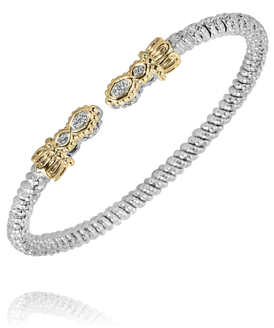Vahan 14K Gold and Sterling Silver 3mm Diamond Open Cuff Bracelet
