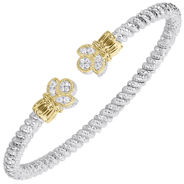 Vahan 14K Gold And Sterling Silver 3mm Diamond Open Cuff Bracelet